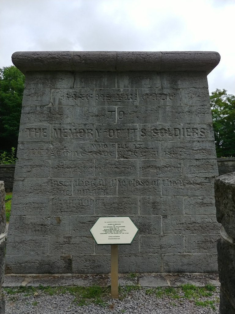 The monument is much simpler in style than later Civil War monuments, whether Union or Confederate, which often are very elaborate. In a way, though, the Hazen Brigade Monument is more poignant than those later monuments, as the men it commemorates are buried around the monument, their gravestones worn down by time. This monument was not constructed as part of a post-war narrative of “Lost Cause” or glorious sacrifice for the nation. It was built by the comrades of the fallen, at a time when the ultimate outcome of the war was still very much in doubt.