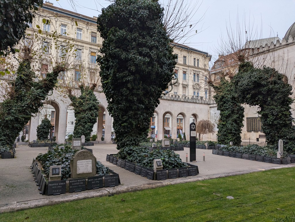 Another unusual feature of the synagogue is that there is a cemetery on the grounds outside. Traditionally, Jewish cemeteries are not built adjacent to synagogues, to keep separation between a place of life (the synagogue) and a place of death (the cemetery). In the case of the Dohány Street Synagogue, the cemetery is a series of mass graves where around 3,000 people who died in the Budapest Ghetto in late 1944 and early 1945 are buried. The victims of the ghetto were buried there soon after the Siege of Budapest ended in 1945 and have never been disinterred, as that would violate Jewish religious practice. Today, the mass graves are ringed by tombstones with the names of the dead – at least for those that are known, as not all of the bodies could be identified.